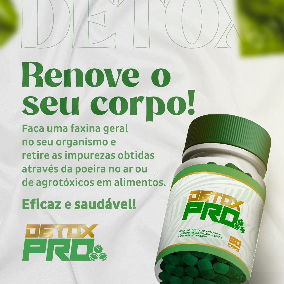Detox PRO é um excelente desintoxicante do organismo, que auxilia na disposição e na energia. Grande aliado nas dietas de emagrecimento, melhora o sistema imunológico e fornece grande quantidade de fibras, vitaminas e minerais que estimulam o bom funcionamento do sistema digestivo.